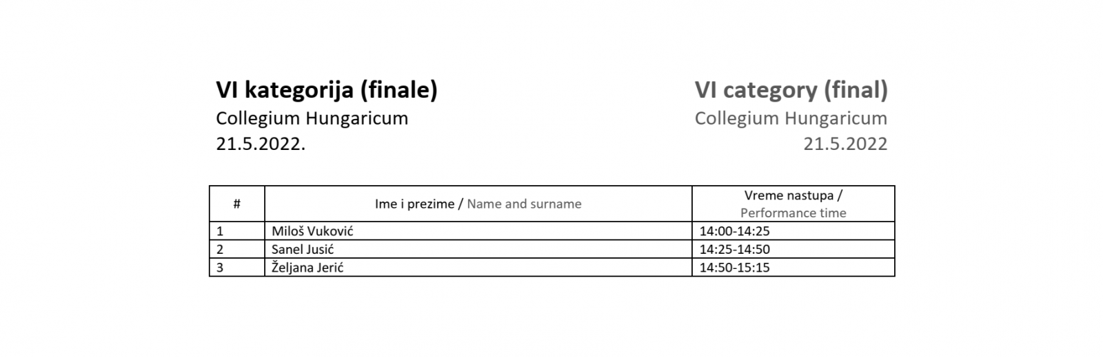 Rezultati takmičenja 2026
